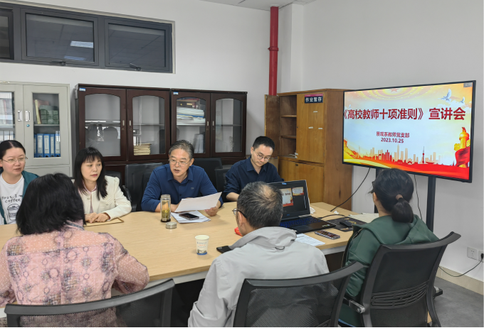 宣讲会上,唐劲松对《新时代高校教师职业行为十项准则》进行了深入解读。他指出高校教师承担着教书育人的光荣使命,师德师风是评价教师队伍素质的第一标准,十项准则是教师职业行为的基本规范,学习准则能让老师们进一步明确新时代高校教师职业规范,也为教师严格自我约束、规范职业行为、加强自我修养提供基本遵循。他希望每一位教师要以更加强烈的责任心和使命感履行好教师义务与责任,为学校事业发展做出应有的贡献。