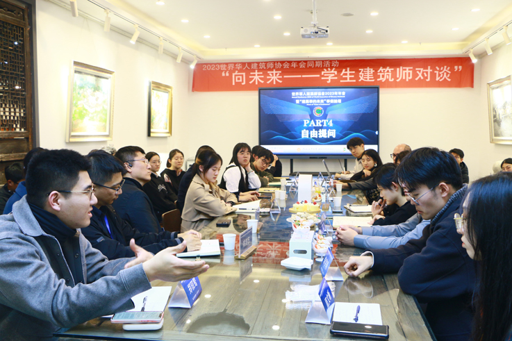 本网讯 12月9日,2023世界华人建筑师协会年会同期活动“向未来——学生建筑师对谈”在合肥工业大学举行。建规学院2020级建筑学郑驭骜、2022级建筑学陈秋豪作为中国建筑学会学生会员代表参加活动。