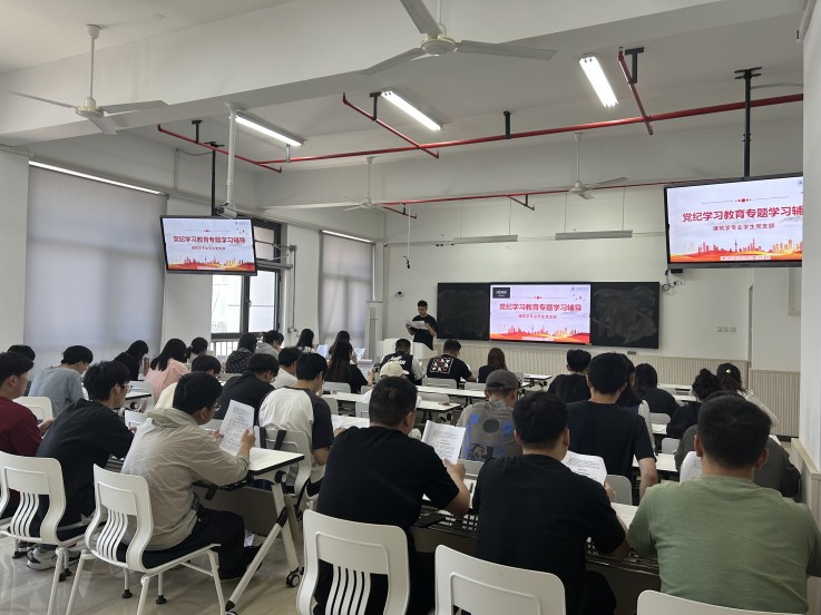 本网讯 5月15日下午,建筑学专业学生党支部于徽韵楼6502教室开展了以“学习党纪党规,筑牢党员本色”为主题的党纪学习活动,本次活动旨在加强党员对党纪党规的了解,提高党员的政治觉悟和纪律意识,确保党员在学习和生活中严格遵守党的纪律。