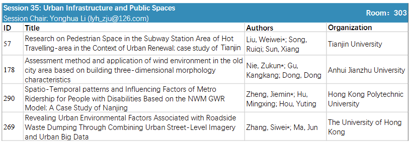 2022级城市规划专业研究生聂祖坤在分会场“Urban Infrastructure and Public Spaces”上做《Assessment method and application of wind environment in the old city area based on building three-dimensional morphology characteristics》的学术报告。老城区作为城市中人口密度较大、功能业态较为密集的区域,其相对城市其他区域通风散热问题面临更加严峻的挑战。报告介绍了通过建筑三维形态特征参数结合城市风场特征的老城区通风环境评价方法,划分不同类型管控区域,提出相适应的空间形态优化策略,以此为老城区通风空间研究提供系统性框架,对未来针对可能面临的气候适应性不足等问题提供思路。(图文:聂祖坤,左丹;审核:唐劲松)