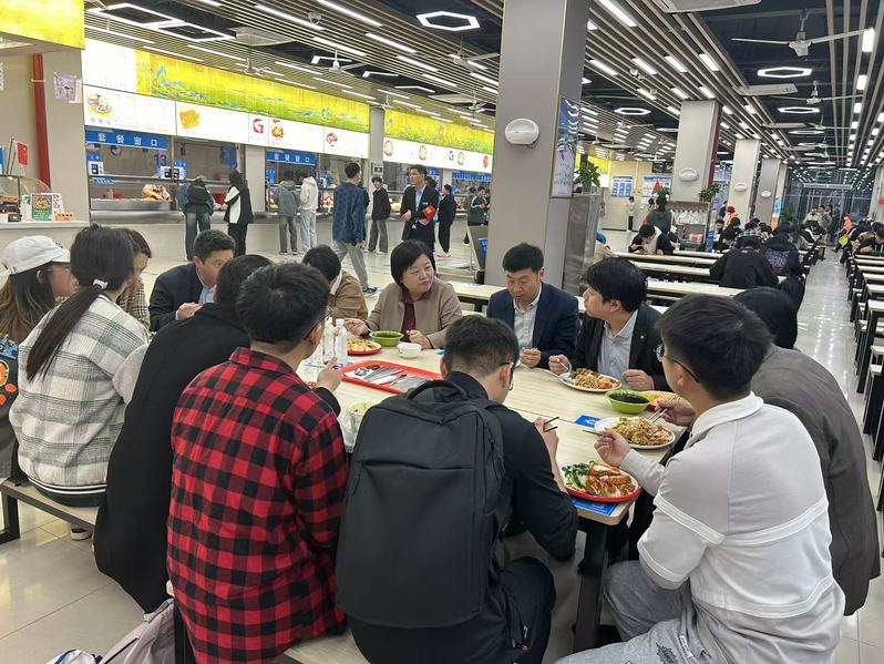 李早一行深入南区紫云餐厅一楼与同学们一起就餐,就餐期间,李早针对学习生活习惯、考研准备、学科竞赛等内容与同学们展开交流,同学们畅所欲言、积极表达自己的观点和看法,对于同学们存在的困惑和疑问认真给予解答。李早嘱咐同学们要珍惜时光,努力学习专业知识,成长为祖国的栋梁之材。