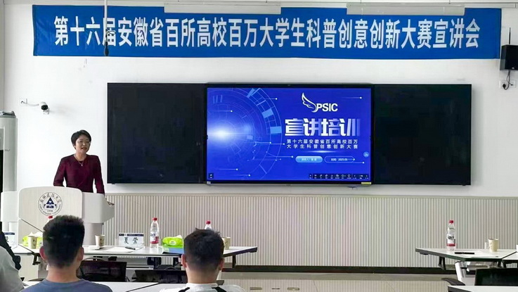 夏莹详细介绍了双百大赛的背景、意义及参赛流程,强调大赛作为培养青年科技创新人才的“摇篮工程”,为安徽省乃至全国的科普事业输送了大量优秀人才和作品。同时还特别提到,本届大赛将更加注重作品的原创性、科学性和普及性,期待广大青年学子能够踊跃参赛,展现自己的科普创意才华。