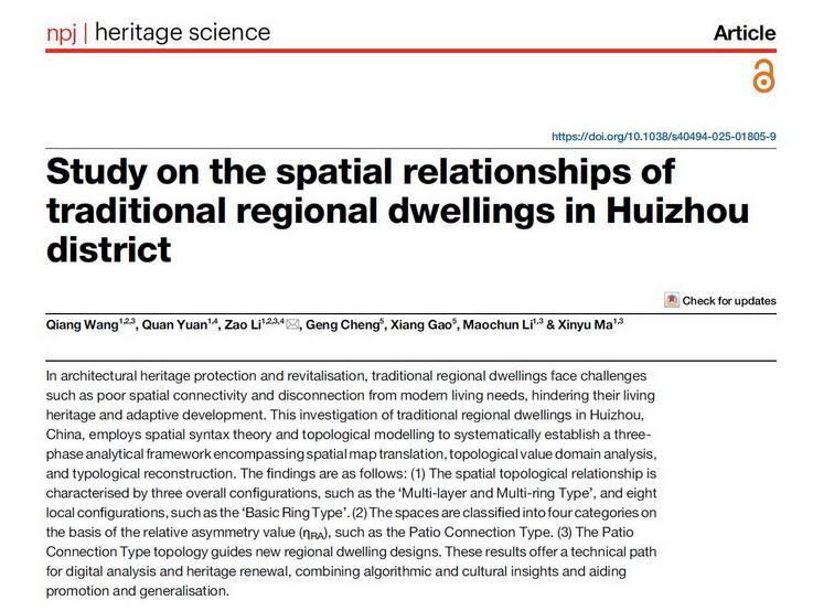 本网讯 近日,我校地域人居环境与空间智慧感知安徽省高校优秀科研创新团队在Nature旗下期刊《npj Heritage Science》(遗产科学)在线发表题为《Study on the Spatial Relationships of Traditional Regional Dwellings in Huizhou District》的研究型论文。该成果以徽州传统民居为研究对象,突破传统形态学分类的局限,从空间连接关系的视角出发,通过拓扑结构分析、空间图谱构建及相对不对称值(ηRA)的量化计算,系统解析传统民居内部空间组织机制与同构特征。欧美黑人巨大videos精品_欧美黑人巨大xxxxx_欧美黑人乱大交_欧美黑人乱大交_欧美黑人牲交videossexeso_欧美黑人添添高潮a片www_欧美黑人添添高潮a片www_欧美黑人性暴力猛交喷水黑人巨大为第一完成单位和通讯单位,团队青年教师汪强博士为第一作者,通讯作者为李早教授,建筑与规划学院硕士研究生袁泉、李茂春、马欣宇为共同作者,是我校人文社科领域在该类型期刊的首次发表。成果得到国家基金面上项目(NO.52378001)、地域人居环境与空间智慧感知科研创新团队(NO.2022AH010021)等项目的支持。