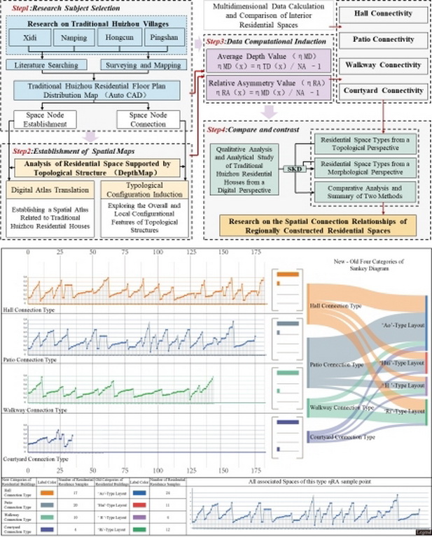 成果提出了“空间图谱转译-拓扑值域分析-类型学重构”的定量分析框架,建立了基于空间可达性特征的分类体系。在理论方面构建了以徽州地域性传统民居空间为代表性案例的建筑遗产空间类型化的技术架构与路径,实现从形态描述向拓扑结构量化分析的范式转换;在实践应用方面为建筑遗产的数字化解析提供了可泛化的算法模型,引导兼顾传统文化特征和现代功能适用的地域性新民居设计与建设。