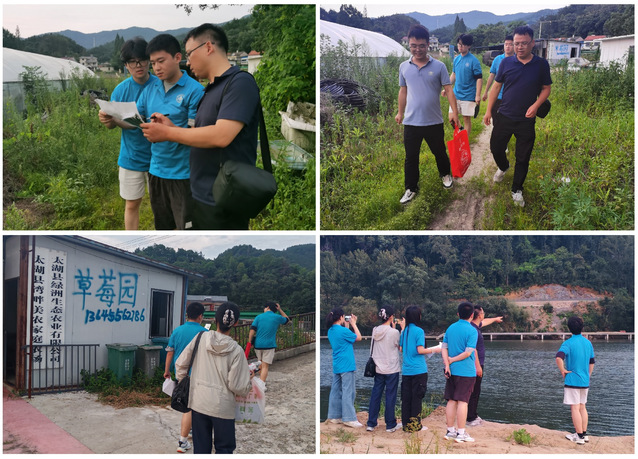 在太湖县花亭湖村和阳冲村,团队实地调研了基础设施、产业发展、生态环境、人居环境与乡村风貌等情况。在实地考察中,团队了解到太湖县通过文旅项目拉动地方经济、加强生态环境保护和治理、推动环境保护与旅游产业协同发展的相关措施。同学们结合专业知识,梳理乡村发展现状与特色,为乡村产业发展、人居环境优化、和美乡村建设等提供规划设计方案。通过与村民交流,团队成员深刻感受到乡村振兴的迫切需求和自身肩负的责任。