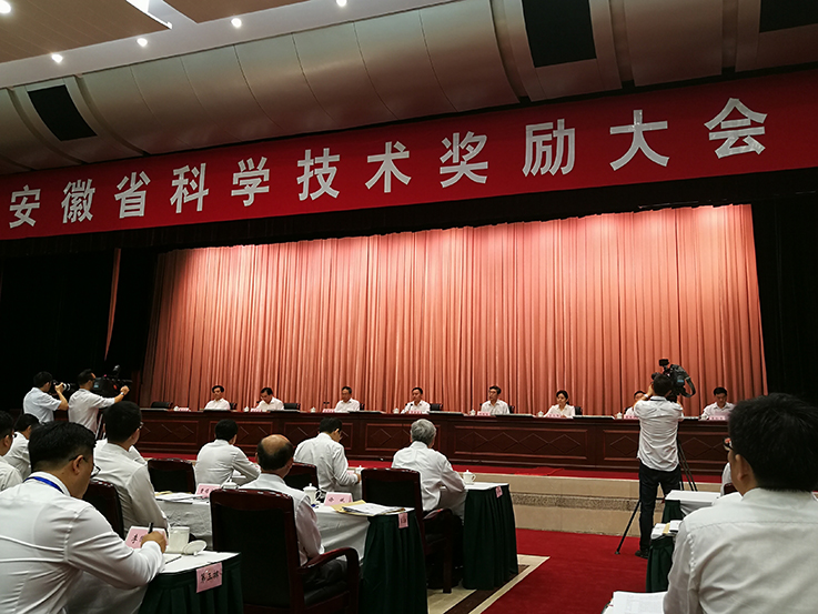 本网讯 6月29日上午,安徽省科学技术奖励大会在合肥隆重召开,省委书记李锦斌为省重大科技成就奖获得者胡以华、省科学技术进步奖特等奖获奖代表匡光力颁奖。省委副书记、省长李国英发表讲话。省委副书记信长星主持会议。省委常委、常务副省长邓向阳宣读2019年度安徽省科学技术奖励决定。省领导陶明伦、丁向群、宋国权、李和平出席大会。在主席台就座的领导同志为获奖代表颁奖。我校方潜生教授、孙道胜教授参加大会。