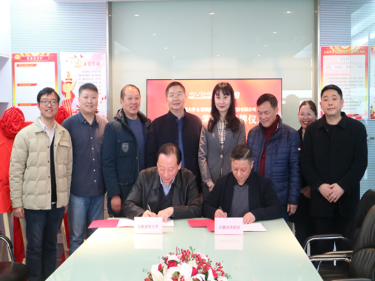 本网讯 12月31日,校党委常委、副校长蔡新立率队赴安徽省深美建设环境科技股份有限公司签订校企产学研战略合作协议,并为双方产学研合作基地、科技成果孵化基地揭牌。科学技术处、科技成果转化中心、环境与能源工程学院、安徽省BIM工程中心相关人员参加签约和揭牌仪式。