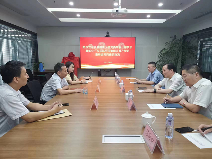 本网讯 8月5日,校党委常委、副校长蔡新立带领学校科学技术处、科技成果转化中心、节能研究院、经济与管理学院负责人赴安徽中江城建集团有限公司、安徽宝翔建设集团有限公司开展产学研合作调研。安徽中江城建集团有限公司董事长朱志福,安徽宝翔建设集团有限公司董事长、学校杰出校友崔玉宝携公司高管、校友热情接待蔡新立一行。
