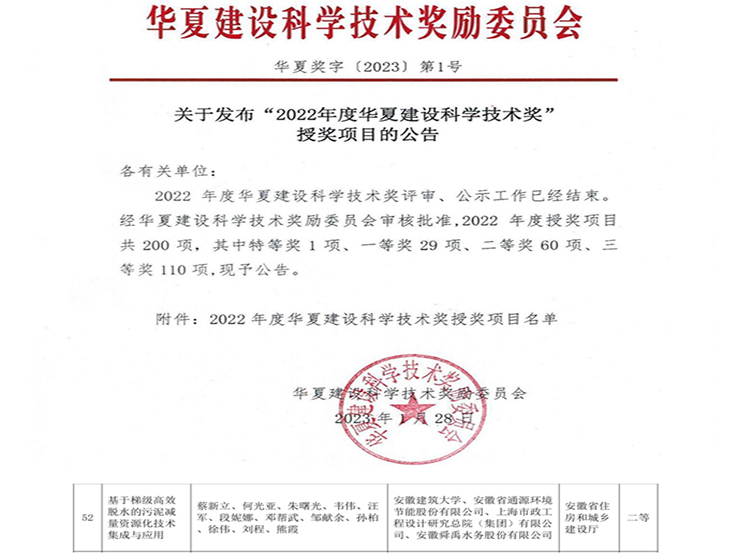 本网讯 2023128日,2022年度华夏建设科学技术奖获奖项目名单揭晓。我校蔡新立教授作为第一完成人的研究成果“基于梯级高效脱水的污泥减量资源化技术集成与应用”荣获二等奖。
