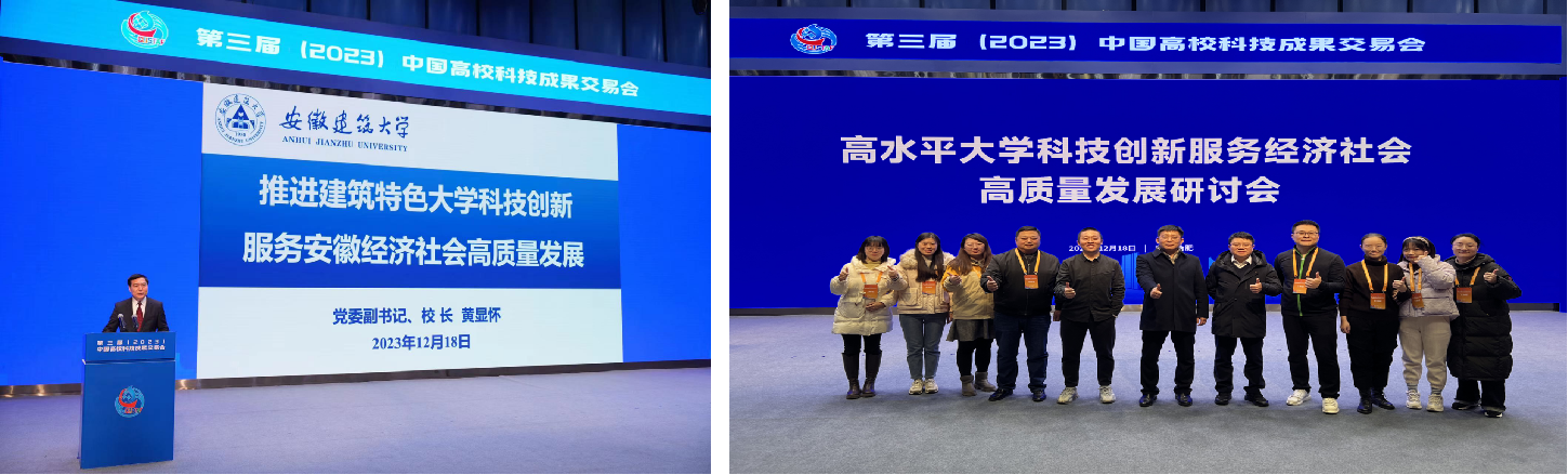 校地、校企政产学研合作不断深化。2023年,学校与中国二十二冶集团有限公司等知名企业签订战略合作协议15项;先后赴黄山、蚌埠、宿州等地,在城市体检、生态城区建设、装配式建筑等领域推动项目落地实施,为地方经济社会发展提供新动力。产学研项目和经费体量稳步提升。2023年学校签订产学研项目249项,合同总金额10147.14万元,到账经费5278.44万元;2023年学校在安徽省技术合同认定登记系统完成合同登记130项,合同金额约4003.29万元,其中技术额约3937.29万元。