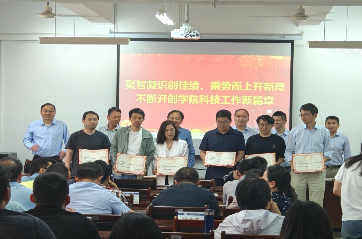 随后,胡志龙副书记宣读了“关于表彰2024年度学院科技工作先进个人的决定”,对2024年在科技创新、社会服务等方面为学院做出突出贡献的丁超、胡浩威、李卫华、吕科锋、王灿、韦伟、奚姗姗、赵强、周戎星等9位老师予以表彰。