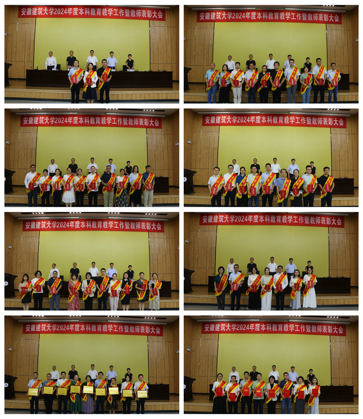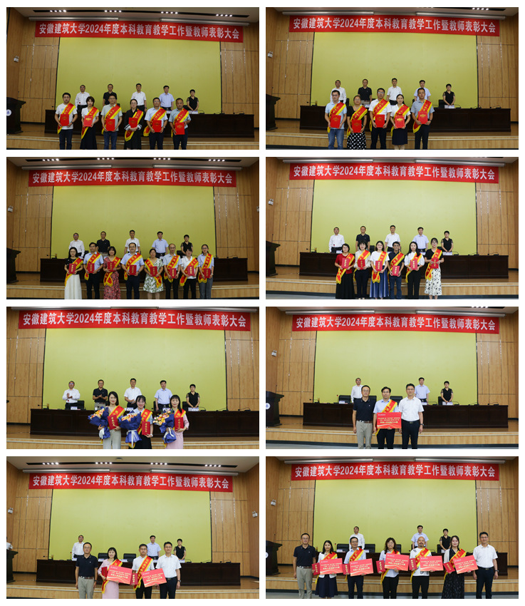 会上,王玉兰分别宣读了获2024年度安徽省优秀教师、优秀教育工作者和教育工作先进集体,校师德标兵、优秀教师、优秀教育工作者,2021-2023年度“三全育人”先进集体和先进个人荣誉表彰,2024年教学竞赛以及第三届“东方节能”优秀教学奖获奖人员名单。学校领导依次为受表彰的先进集体和先进个人颁发荣誉证书并合影留念。