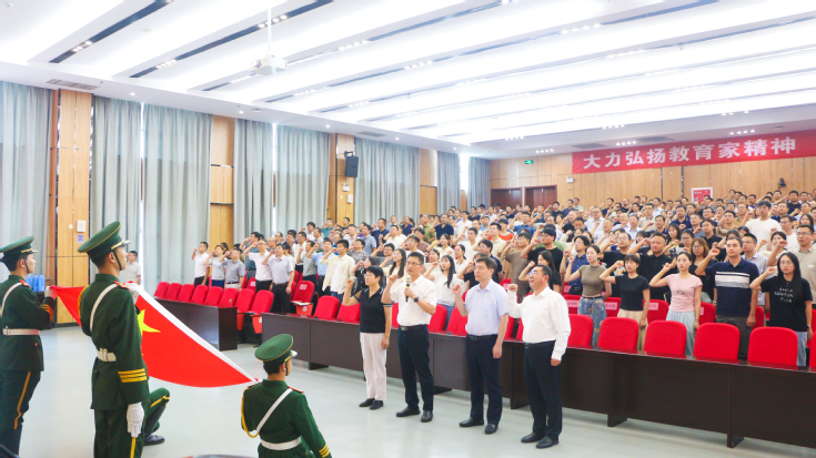 随后,马文革率全体参会教师,面向五星红旗,举起右拳许下铮铮誓言。铿锵有力的宣誓振奋人心、催人奋进,进一步坚定了广大教师的职业信念和职业操守。