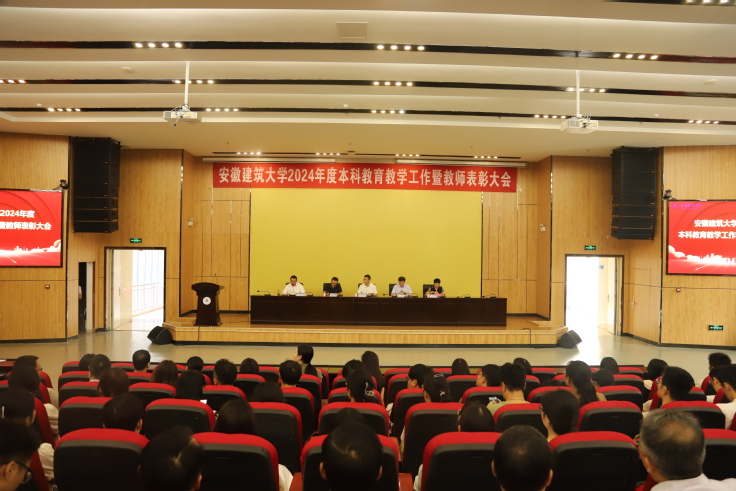 本网讯 9月13日下午,学校2024年度本科教育教学工作暨教师表彰大会在徽风楼二楼报告厅召开。校党委书记马文革,校党委副书记、校长黄显怀,校党委常委、纪委书记、监察专员王玉兰,校党委常委、副校长蔡国军出席会议,合肥东方节能科技股份有限公司常务副总经理赵仕堂、优秀校友安徽通源环境节能股份有限公司董事长杨明应邀出席。学校全体处级干部、各基层教学组织负责人、教学办负责人、校教学督导代表、近一年新进人员和受表彰人员等参加会议。会议由蔡国军主持。