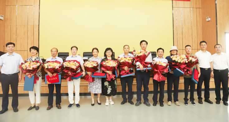 校领导马文革、黄显怀为荣休教职工颁发荣休证书和纪念品,蔡国军率青年教师代表为各位荣休教职工献上节日的鲜花,表达真挚的祝福。