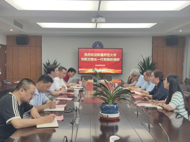 本网讯 2024 年 9 月 20 日,新疆师范大学化学化工学院院长刘和文、副院长李桂新、副院长阿布都热西提·阿布力克木和博士后秘书宋含一行四人到我校调研博士后科研流动站建设工作。座谈会由校党委副书记、校长黄显怀主持,校党委常委、副校长蔡国军,人事处、材化学院、科技成果转化处等相关部门负责同志及艺术学院教师代表参加调研。