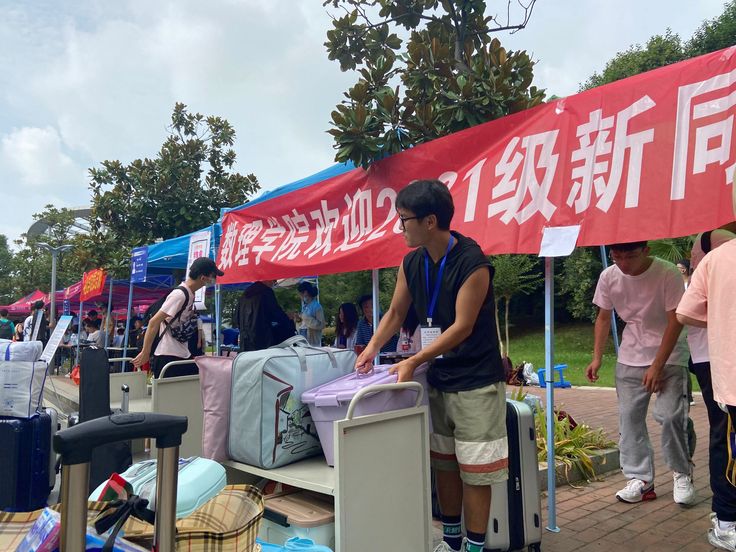 新生志愿者的引导下从南大门前往报到处,途中,学生党员志愿者积极帮助学弟学妹搬运行李,介绍校园,充分发挥党员先锋模范作用,以实际行动践行全心全意为新生服务的宗旨。报到处志愿者工作更是有条不紊,为新生做好登记、办理入住手续、发放新生物品。老师在一旁与新生悉心交流、答疑解惑,让他们在与父母短暂离别后充分感受到数理大家庭的温暖,欢迎墙前大家纷纷拍照留念。