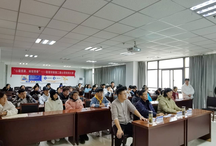 本网讯 为了解大学生生活中突出的心理困惑,助力大学生心灵成长,12月15日下午数理学院在实验综合楼1306举办“心垂荧幕,映现青春”第二届心理成长视频大赛。数理学院党委副书记徐华洋、校心理健康中心主任吉晓青、辅导员赵妮水天柱到场观看比赛并担任评委。