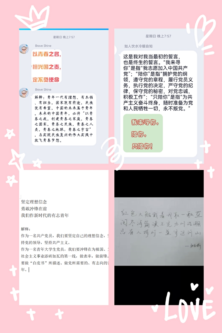 本网讯 近日,《新时代的中国青年》白皮书发布。4月25日,数理学院学生第一党支部线上开展党日活动对该文件进行了学习,并以“三行情书”的形式畅谈学习感悟。
