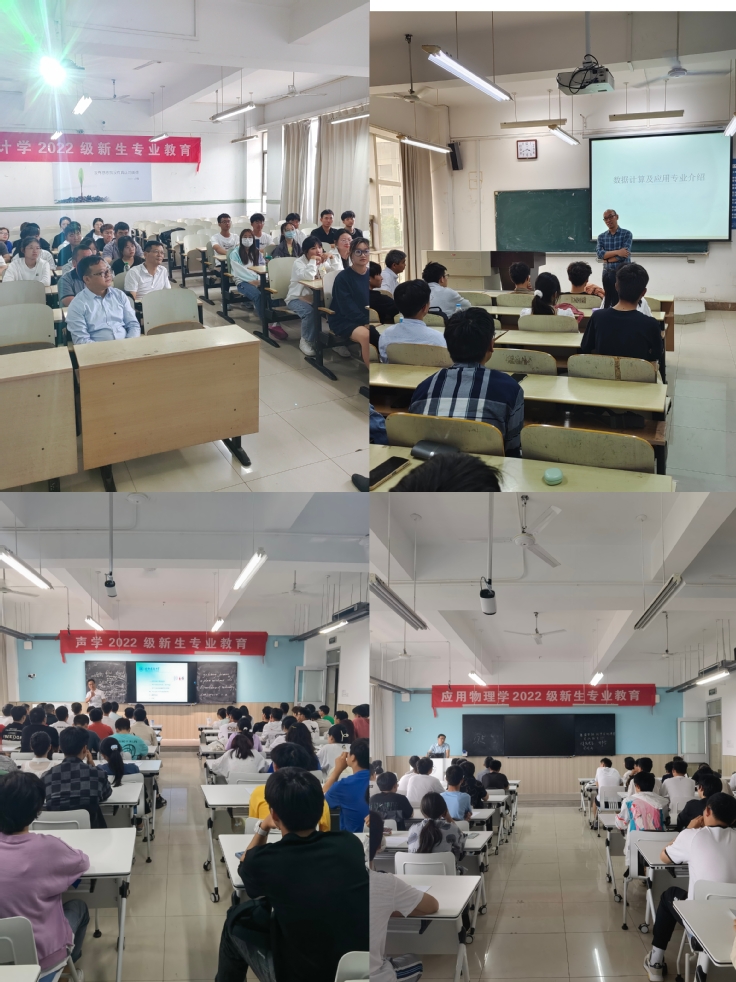 本网讯 为充分发挥学业导师在学生学业发展过程中的指导作用,促进新生全面健康发展,提升学业导师指导学生规划学业的能力,数理学院于9月21日下午在主教学楼1501、1502、1406、1409教室分专业开展新生专业教育,学院党政领导班子、各系主任、学业导师、2022级全体新生参会。