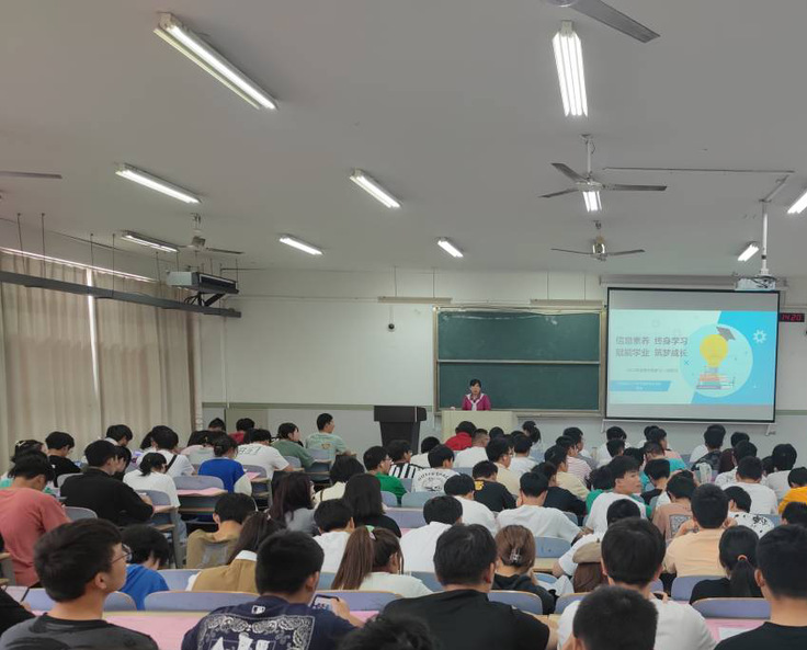 本网讯 为了让新生更快了解和使用图书馆资源,营造良好学风、校风,培养学生自学能力,提高文学素养和专业知识。数理学院特邀请图书馆参考咨询部梁婧老师为2022级新生开展题为“信息素养 终身学习 赋能学业 筑梦成长”的新生图书馆入馆教育知识普及讲座。