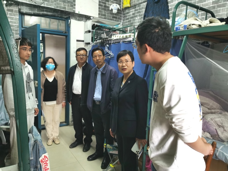 王玉兰来到数理学院宿舍,查看学生住宿环境,了解他们考研就业情况和思想动态,鼓励他们提高自身综合素质,尽快成长成为社会需要的有用人才。