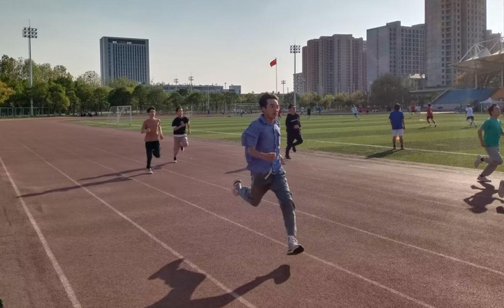 活动开始前,由学生会体育部工作人员带领运动员进行热身活动,随后运动员以班级为单位有序开展100米、200米、800米、跳远、铅球、仰卧起坐等项目测试。同学们热情高涨,在操场边为同班同学呐喊助威。