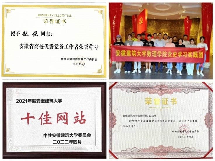 三、坚持强化示范引领,着力打造干事创业先锋模范。五年来,学院党员在教学科研、服务师生、服务社会等方面发挥着先锋模范作用,支部战斗堡垒作用逐步彰显。一是率先垂范立标杆。五年来,刘华勇等6名教师党员获得安徽省数学建模优秀教师,严飞等10名教师党员获得省级“教坛新秀”。疫情期间,教师党员李璐深入研究线上教学,建立完善《线性代数》网络课程体系,获得安徽省“线上教学名师”、“卓越教坛新秀”、校“优秀共产党员”荣誉称号。学生党员潘应浩专业知识扎实、创新创业能力强,先后获得“2019年度安徽省大学生年度人物”、安徽省“优秀大学生”、安徽省“创新创业好青年提名奖”和“勤学上进好青年提名奖”等荣誉称号。二是挂牌上岗亮身份。学生党支部在班级、宿舍中建立“党员示范岗”“党员之家”,挂牌上岗,亮出身份,以身作则,接受监督。把工作责任落实到每栋宿舍、每个楼层,把服务面扩大到广大学生当中,在岗位上树立党员良好形象,在师生中展现党员先锋模范作用。三是服务师生勇争先。组织教师党员下沉学生当中,开展考研、考博、学业、就业、创新创业辅导;学生党员争当“朋辈导师”,发挥“传、帮、带”作用,与学业困难学生手拉手,成为学习“合伙人”,定期在专业学习、创新创业、文化体育等方面开展“一对一”学业帮扶;师生党员积极投身志愿服务活动,在毕业生离校、新生报到、高考网评、疫情防控等社会服务工作中展现榜样风采。