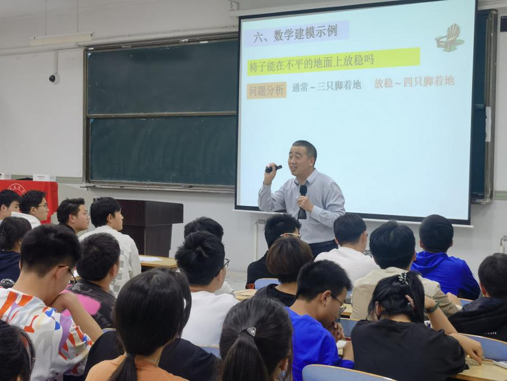 安徽建大高度重视本届大赛,由数理学院统筹组织。自5月大赛启动以来,通过广泛动员、积极组织,共计68支学生团队、204名本科生报名参赛,涵盖全校8个学院。为了更好地指导同学们拓展数学建模知识面,掌握数学工具与方法,有效提高解决问题的水平与能力,数理学院邀请校内外多名深耕数学建模研究与教学的专家举办“数学建模应用及拓展”系列讲座,校常委委员、副校长闵杰为参赛学生授课,加油鼓劲。