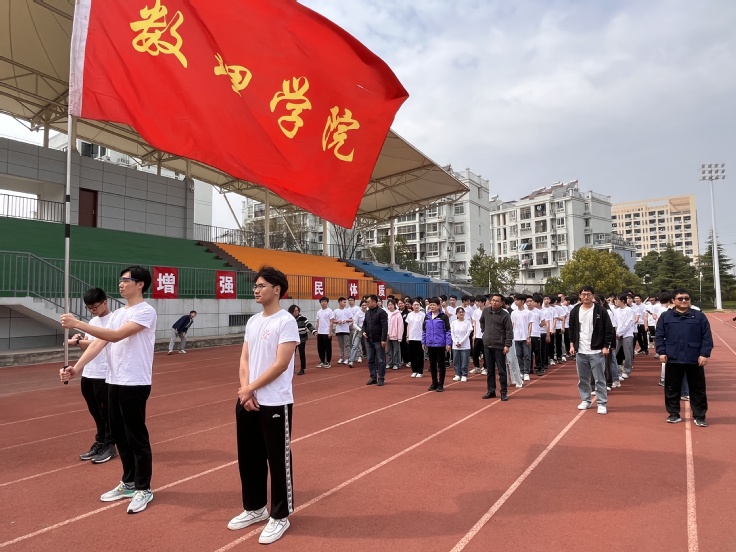 本网讯 为深入学习宣传贯彻党的二十大精神,“五育”并举促进学生全面发展,3月29日,数理学院第九届Ω科技文化节在南校区风雨操场隆重开幕。本次科技文化节以彩虹跑的形式开幕旨在响应国家全民运动的号召,丰富学生校园体育文化生活。校党委常委、纪委书记、监察专员王玉兰,学院党政领导班子成员、辅导员及学生代表近两百人参加活动。