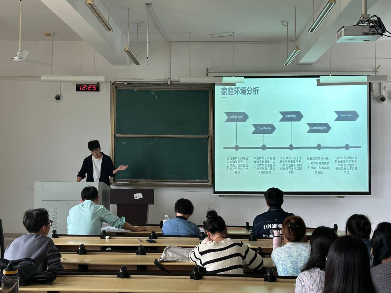 此次初赛分为参赛选手职业生涯规划演讲、PPT展示、现场提问三个环节。参赛选手通过自我分析、行业认知、职业探索、择业决策、实践经历等内容展示个人职业生涯规划。在答辩环节,评委老师就选手现场表现、职业生涯规划书、人物访谈报告进行现场提问,并给予点评与建议。整个比赛过程紧张有序,选手们的职业生涯规划能够做到结构完整、逻辑清晰、条理清楚、重点突出,职业生涯目标定制贴切合理,演讲过程富有感染力。