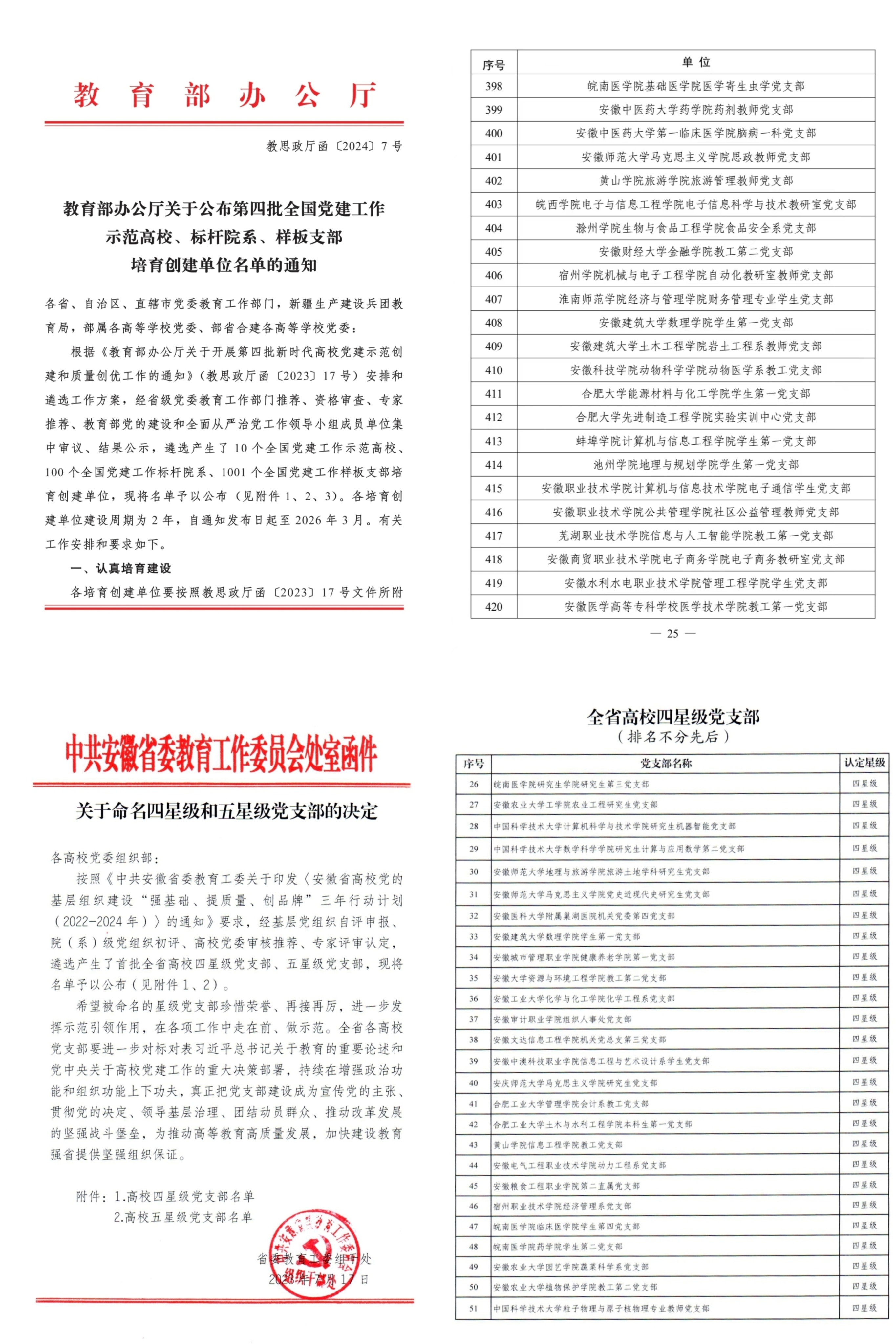 本网讯 近日,教育部办公厅公布了第四批新时代高校党建示范创建和质量创优工作遴选结果。数理学院学生第一党支部成功入选第四批“全国党建工作样板支部”培育创建单位。