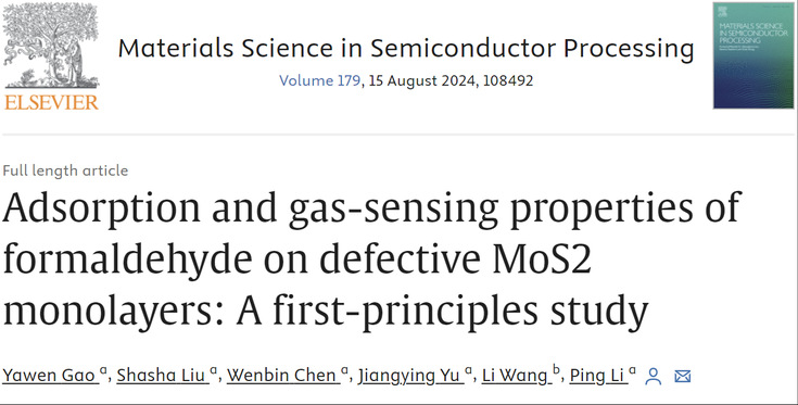 本网讯 近日,我校数理学院声学专业2021级本科生高娅雯以第一作者在国际学术期刊Materials Science in Semiconductor Processing(IF=4.1JCR二区,中科院三区)发表题为Adsorption and gas-sensing properties of formaldehyde on defective MoS2 monolayers: A first-principles study”的研究论文。数理学院李平副教授是论文的通讯作者,欧美黑人巨大videos精品_欧美黑人巨大xxxxx_欧美黑人乱大交_欧美黑人乱大交_欧美黑人牲交videossexeso_欧美黑人添添高潮a片www_欧美黑人添添高潮a片www_欧美黑人性暴力猛交喷水黑人巨大是论文的唯一完成单位。