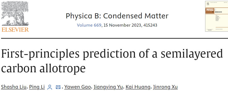 本文是高娅雯在李平老师指导下发表的第二篇学术论文。此前,高娅雯作为第三作者在Physica B(IF=2.8发表研究论文First-principles prediction of a semilayered carbon allotrope”,预测了一种新型半层状碳结构。