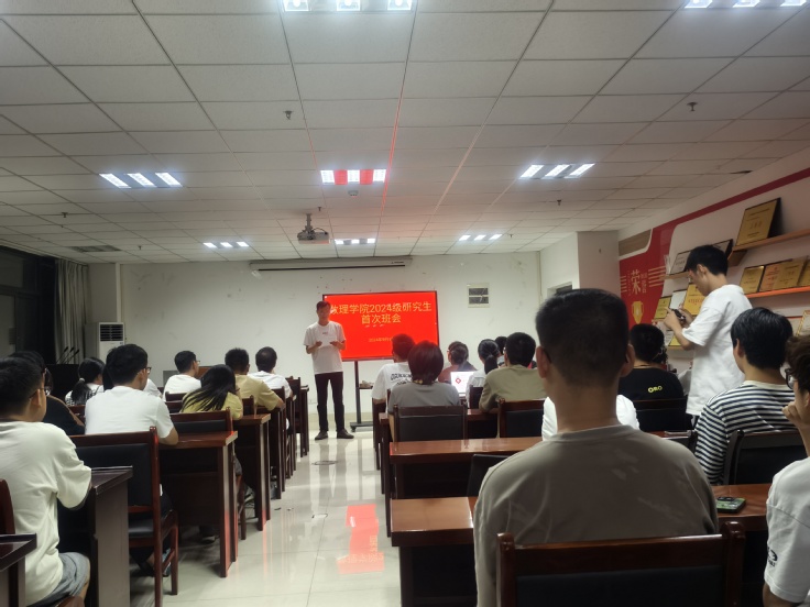 9月9日晚,数理学院组织开展了2024级硕士研究生新生的首次班会。数理学院党委副书记方绍正介绍了数理学院的发展历程以及研究生培养教育工作,并就如何在三年求学生涯中让自己在学业、生活等各方面取得长足进步与同学们进行了互动交流。研究生辅导员王森现场解答了大家在学习、生活、安全、科研等方面关心的问题。现场经过自我推荐、公开投票的方式选举产生了班委会和团支部。