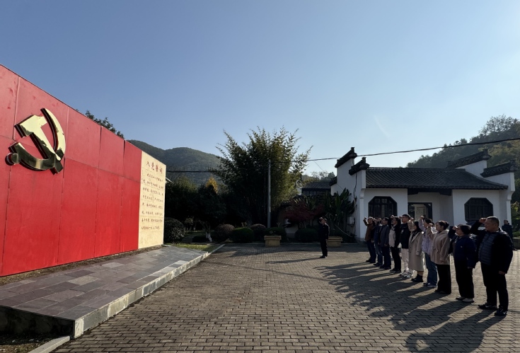 会后,中心组一行来到铜陵市首次党代会纪念馆开展实践学习。纪念馆内,一份份图文资料全面、真实地记录了铜陵革命的伟大历程,一件件珍贵的革命文物见证着革命先辈为铜陵革命事业艰苦奋斗、勇于献身的大无畏精神和爱国情怀。党员们认真观看,感慨万千,回顾着那段艰苦卓绝、波澜壮阔、可歌可泣的光荣历史。参观结束后,在胡燕青的带领下,大家举起右手,在鲜艳的党旗下重温入党誓词。
