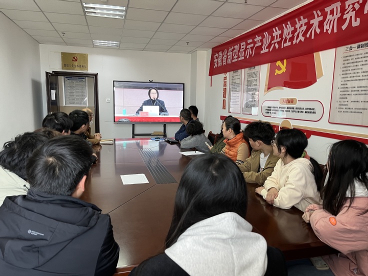 本网讯 3月18日,数理学院组织师生于徽风楼1304会议室集中收看学习贯彻2025年全国两会精神的专题宣讲直播报告会。此次宣讲专家为十四届全国人大代表、中共安徽省委讲师团理论宣讲专家、中共安徽省委党校(安徽行政学院)党的建设教研室主任吴梅芳。学院党委理论学习中心组成员、支部书记、党员干部、师生代表参加。