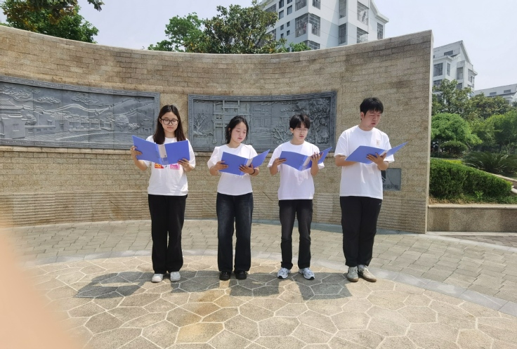 本网讯 2025年是纪念“五四运动”106周年,中国共产主义青年团成立103周年。为深入贯彻落实习近平总书记在安徽考察时的重要讲话精神,传承和弘扬“五四”精神,团结凝聚团员青年在奋力谱写中国式现代化建大篇章中挺膺担当、贡献力量,数理学院开展纪念“五四运动”系列活动之重温一次入团誓词活动。70名共青团员代表,在易海湖畔郑重宣誓,高唱中国共青团团歌。
