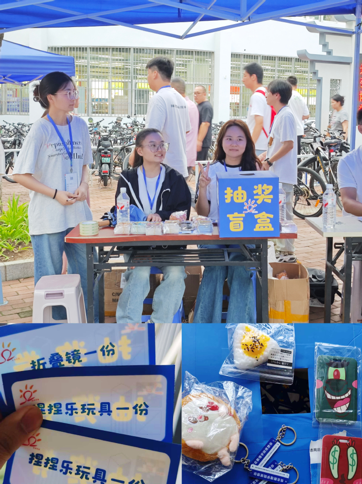 学院特别策划“数理启航·惊喜盲盒”抽奖活动,新生完成报到后可抽取精美礼品,增添入学仪式感。报到处旁边的“数理星辰·未来可期”主题打卡区成为迎新现场的焦点。背景板以学院logo为核心,融入数学符号、几何图形与星辰元素,象征理性与浪漫的碰撞。两侧设置趣味拍照框,新生可手持“欢迎新同学”、“数理人报到”等手举牌,摆出个性姿势留念。不少新生与好友连续拍摄多张照片,兴奋地说:“这些打卡点太有意思了!我要发朋友圈让高中同学羡慕一下!”