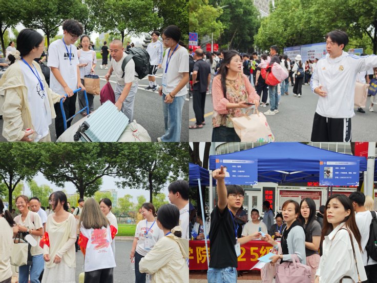 在南大门接待点、大本营报到点、新生宿舍的楼下和楼道,处处活跃着学生党员、志愿者和班主任助理的身影,他们热情地引导带路、提供登记咨询、帮忙搬运行李、答疑解惑,一句句“学长帮你拿”“学姐带你去报到”让新生倍感亲切。