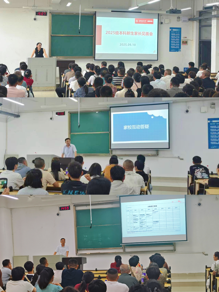 下午,学院分专业召开2025级新生家长见面会。学院党政领导、新生辅导员为新生家长详细介绍了学院培养目标、学科专业、师资队伍、就业方向、学生管理等方面情况,并就新生家长提出的问题进行解答,进一步拉近了学院与学生家长之间的距离,凝聚了家校共建的育人合力,全方位助力学生成长成才。