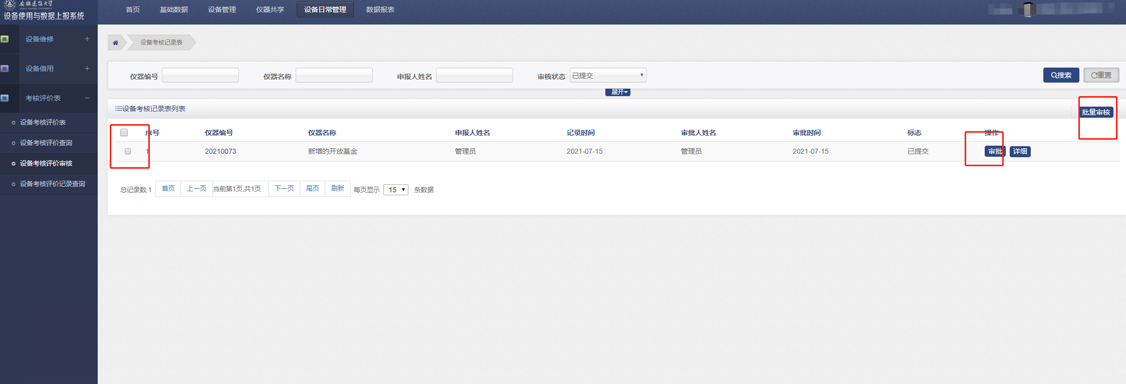 注意:10万(含)-小于30万的设备只是具体考核标准不同,流程可参照大于等于30万的设备考核自查表申报流程。