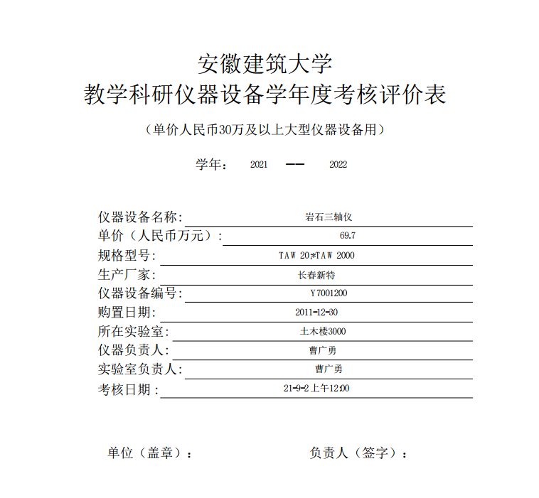 新增相关教学科研仪器设备学年度考核评价表数据,分两种情况,1:大于等于30万,点击新增按钮之前选择,要新增的是大于等于30万的设备。
