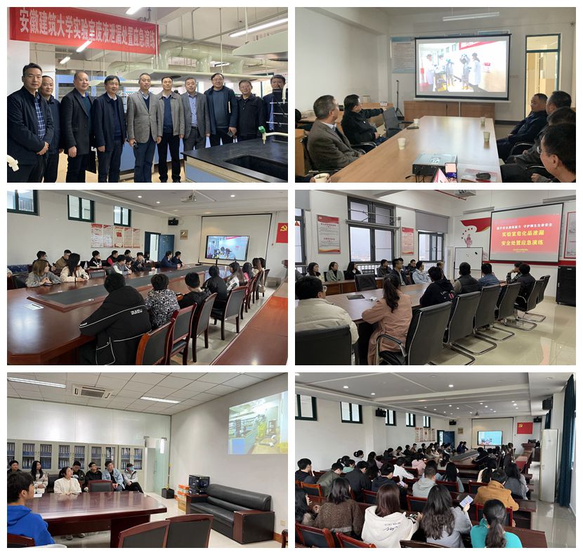 11月23日下午,学校在理化楼C202开展实验室危化品泄漏安全处置演练,并通过网络平台面向全体师生直播。副校长闵杰宣布安全演练开始并至主会场观看直播,土木学院、环能学院、材化学院、机电学院等相关学院分别组织分会场观看演练。