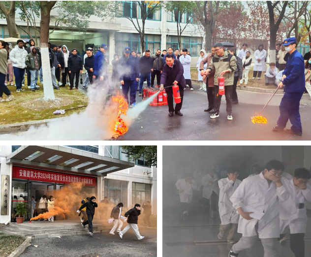 “以演促练、以练为战”。组织师生在徽文楼和徽匠楼开展实验室安全应急疏散及灭火实操演练,多部门协同联动,包括留学生在内的400余名师生积极参与,有效提升师生预防和应对安全风险能力。