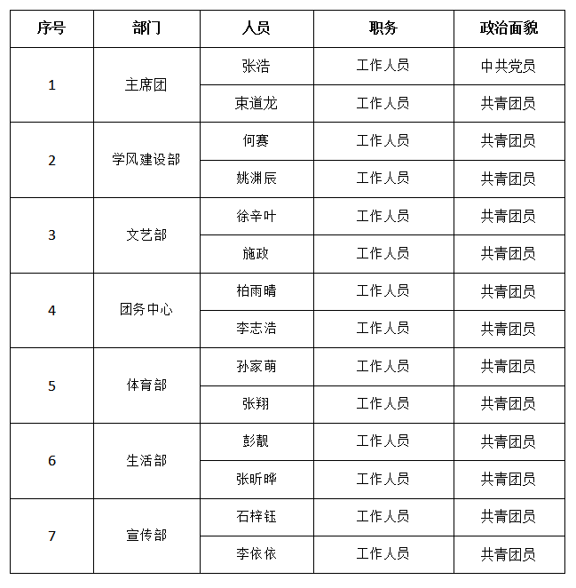 经2020年11月4日土木工程学院第二次学生代表大会讨论选举,并报土木工程学院党委及校学生会批准,拟推荐由韦成成等15名同志组成的土木工程学院第二届学生委员会(按姓氏笔画排序),现予以公示: 韦成成、王聪慧、田佳、孙兴涛、许沛瑶、刘晓、江涛、刘继尧、张浩、束道龙、张谦硕、孟缘、柏雨晴、高亦、戴俊杰。 经竞聘、民主选举,并报土木工程学院党委批准,拟推荐以下人员为土木工程学院学生会组织工作人员,现予以公示: