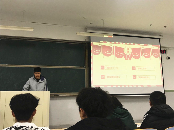 本网讯  3月27日,土木学院开展以“弘扬雷锋精神,寻找时代榜样”主题活动。活动旨在通过讲述雷锋故事和PPT展示来让同学们知雷锋,学雷锋,进而弘扬雷锋精神。