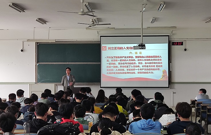 土木学院党委书记李大华以端正入党动机,自觉接受党组织的培养、教育和考察为主题,以入党为中心,带领同学们了解入党的基本步骤以及入党条件,鼓励同学们积极响应党的号召,了解党的大政方针,成为先锋队员。