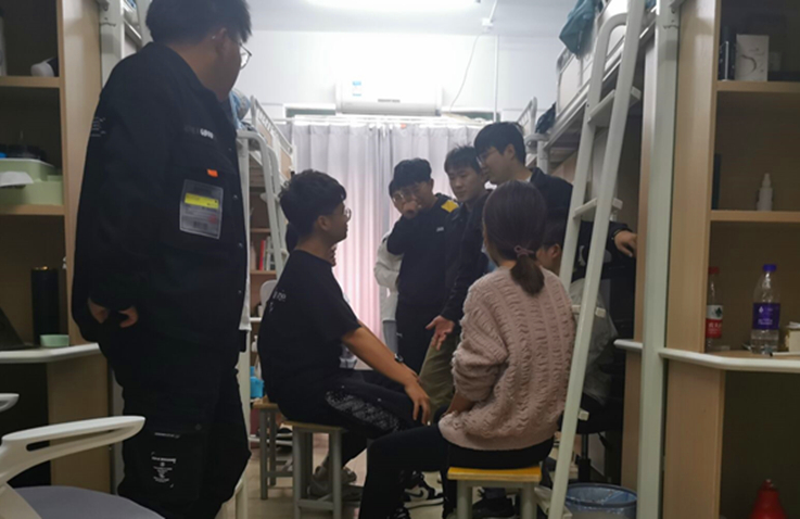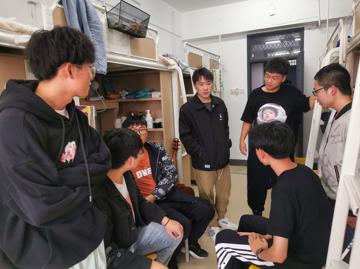 本网讯 为使2021级新生尽快适应大学生活,解决他们在学习、生活等方面遇到的难题,土木学院地质工程学生党支部开展了支部党员与专业新生结对帮扶活动,2021级地质工程每个宿舍安排两位党员进行对接,为他们答疑解惑,排忧解难。10月13日,党员们在支部书记叶训老师的带领下,前往新生公寓开展对接工作。