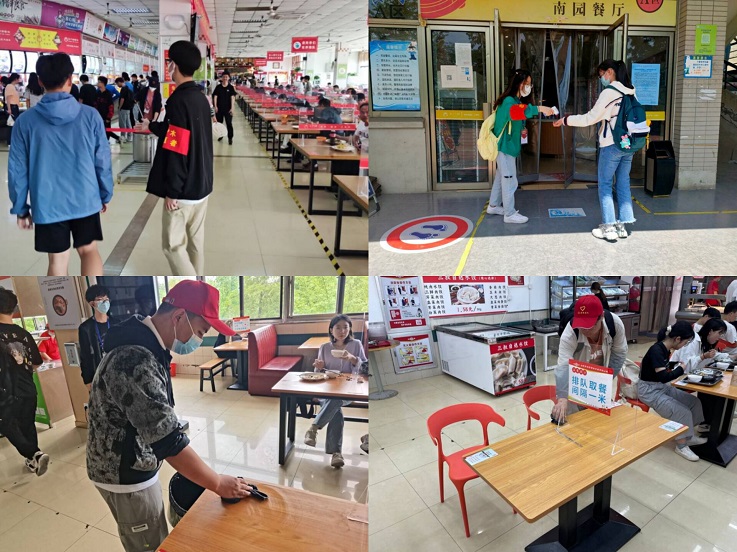 理论学习的同时,强化实践锻炼。结合当前实际情况以及客观需要,学院组织预备党员参加校内志愿服务活动,在食堂参与疫情防控,投身校园防控第一线。预备党员积极响应号召,按照要求,按时有序认真地开展志愿服务工作。志愿者们在餐厅门口为即将就餐的同学测量体温,引导同学进入餐厅同向入座,将桌面上吃剩的餐盘送至用餐回收处,并清理桌面,充分发挥党员模范作用,用实际行动做到“你们在用餐,我们在呵护”,众志成城抗疫情。